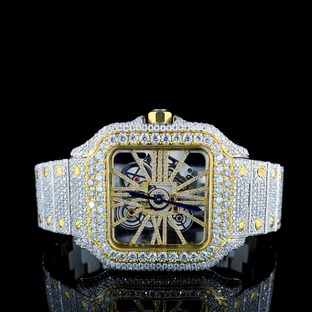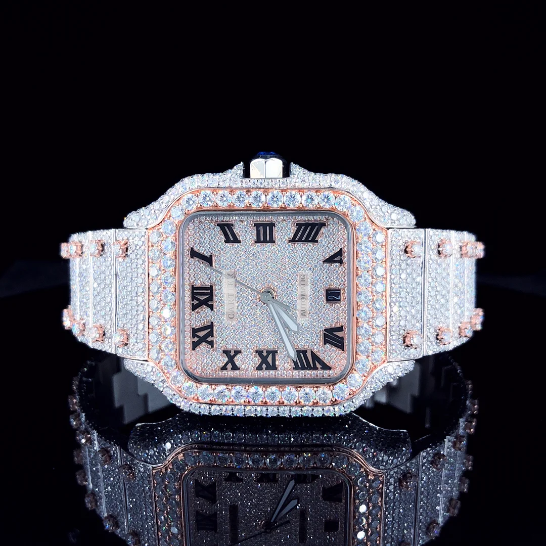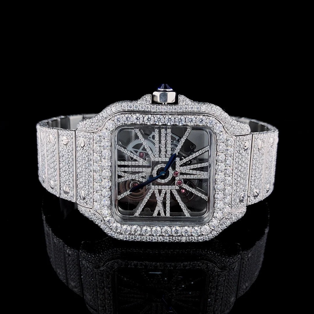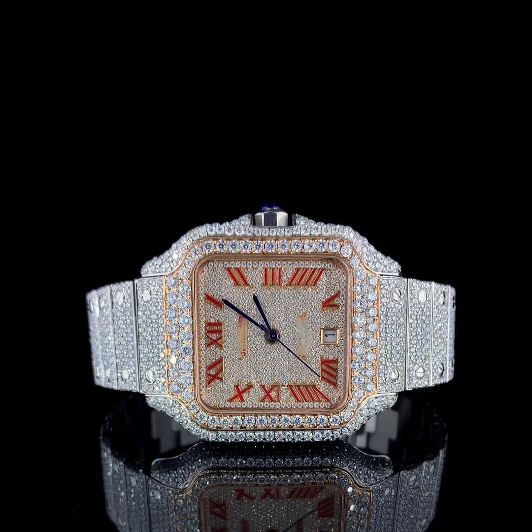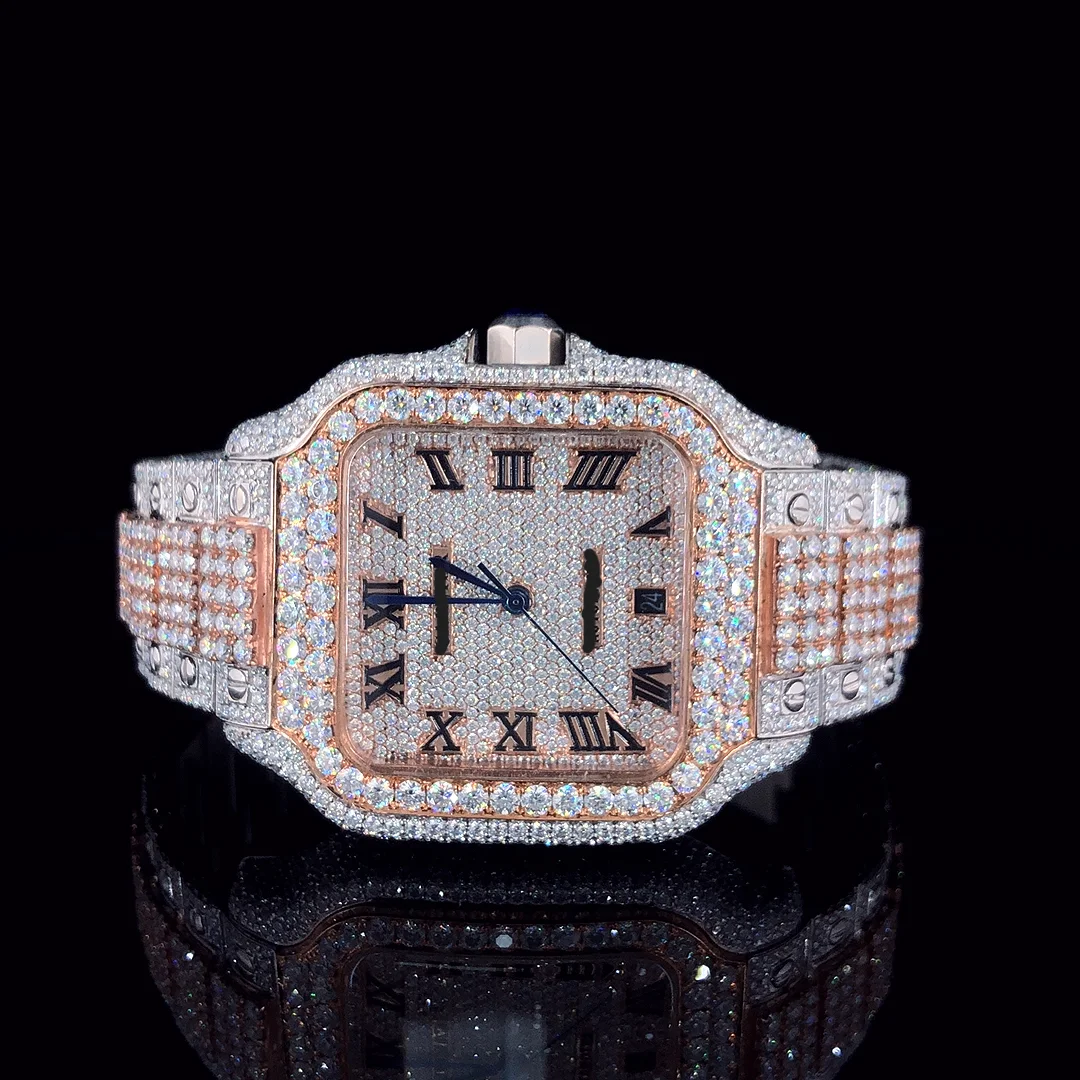 High Quality Luxury VVS Moissanite Diamond Quartz Stainless Steel Watch Men Hip Hop Style Iced CVD Plated Fashionable New