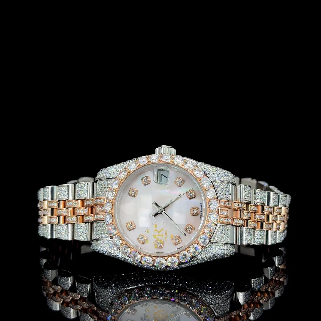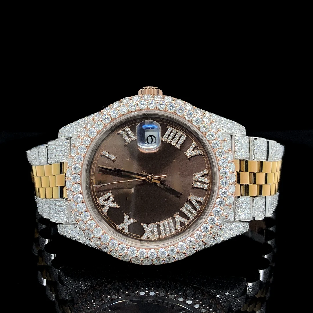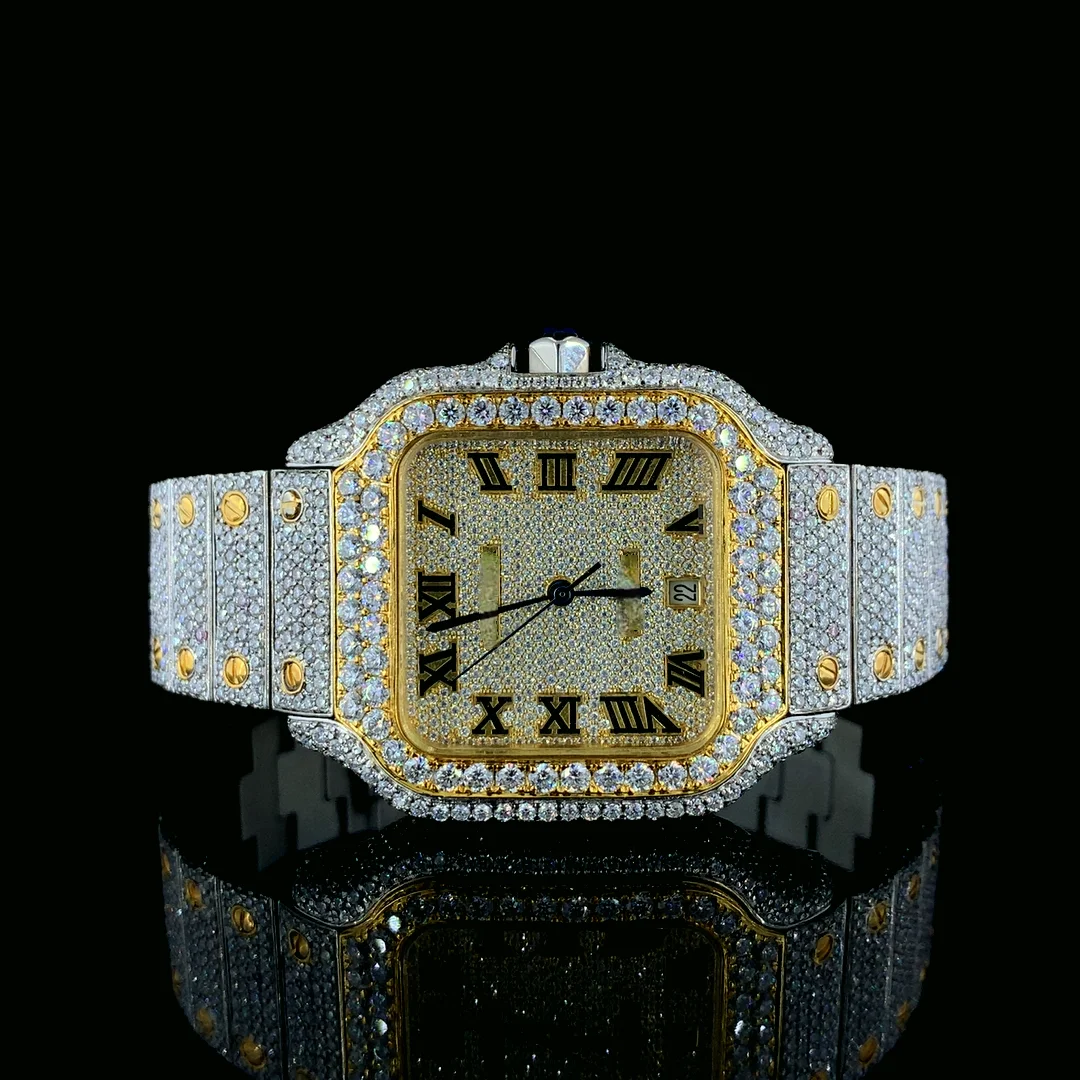 Latest Automatic Date Feature Iced VVS Quality Moissanite Diamond Sport Fashion Coin Hip Hop Two Tone Yellow Stainless Steel