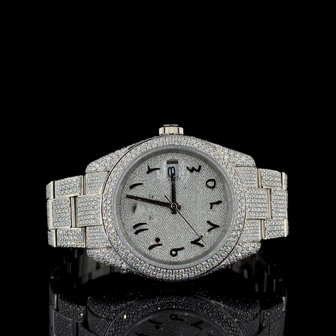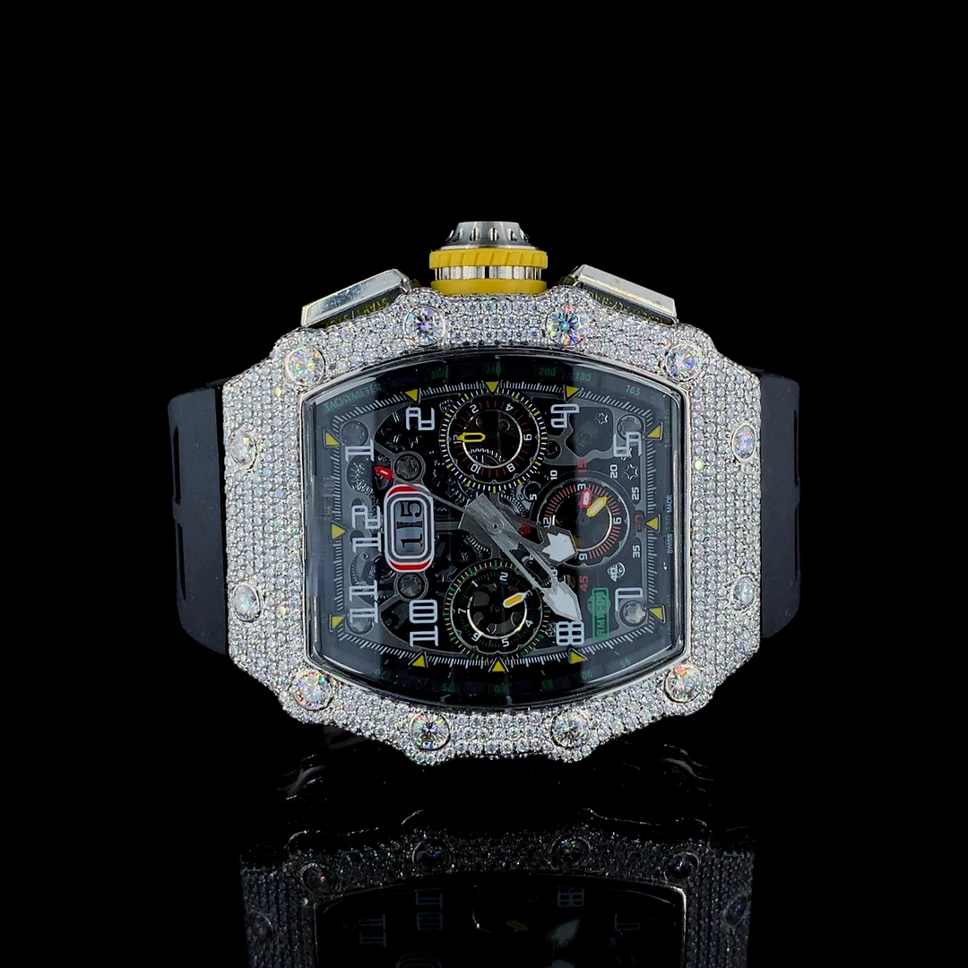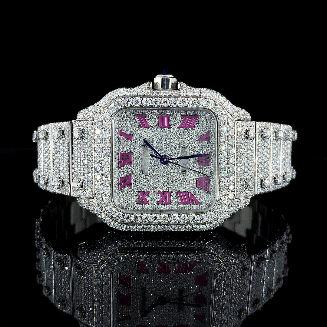 Latest Sport Fashion Hip Hop Shape VVS Quality Moissanite Quartz Watch Automatic Date Feature Stainless Steel Glass Dial
