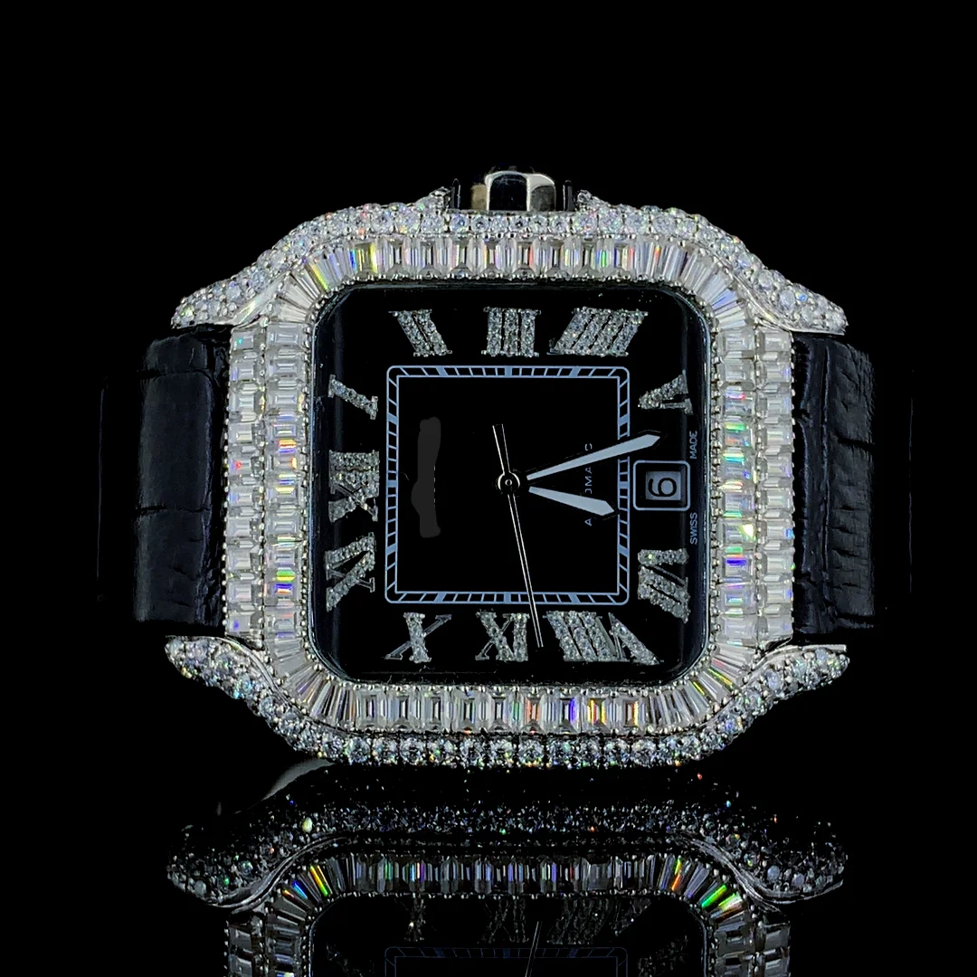 Best Quality VVS Moissanite Diamond Men's Watch Stainless Steel White Gold Plated Roman Square Sport Fashion Style Birthday Gift