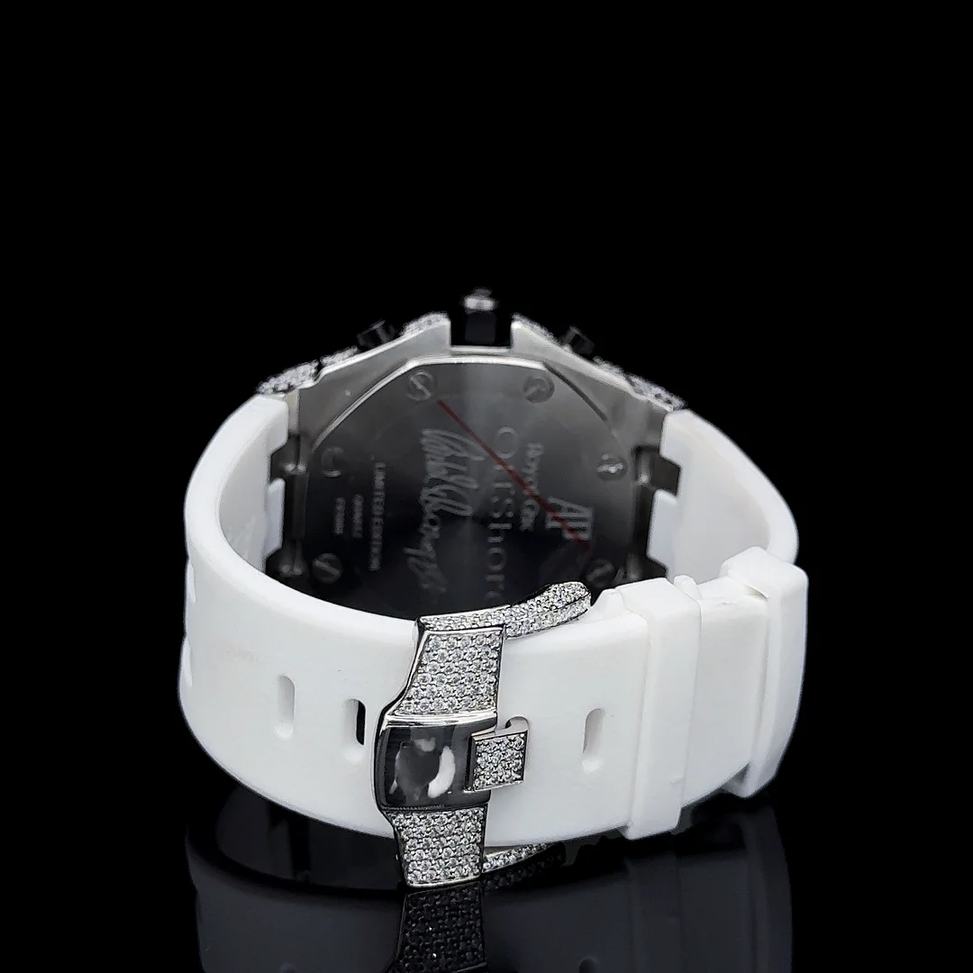 45mm Men's Watch Full Iced Buss VVS Diamond Sport Fashionable Stainless Steel White Band Quartz Movement Glass Dial Chronograph