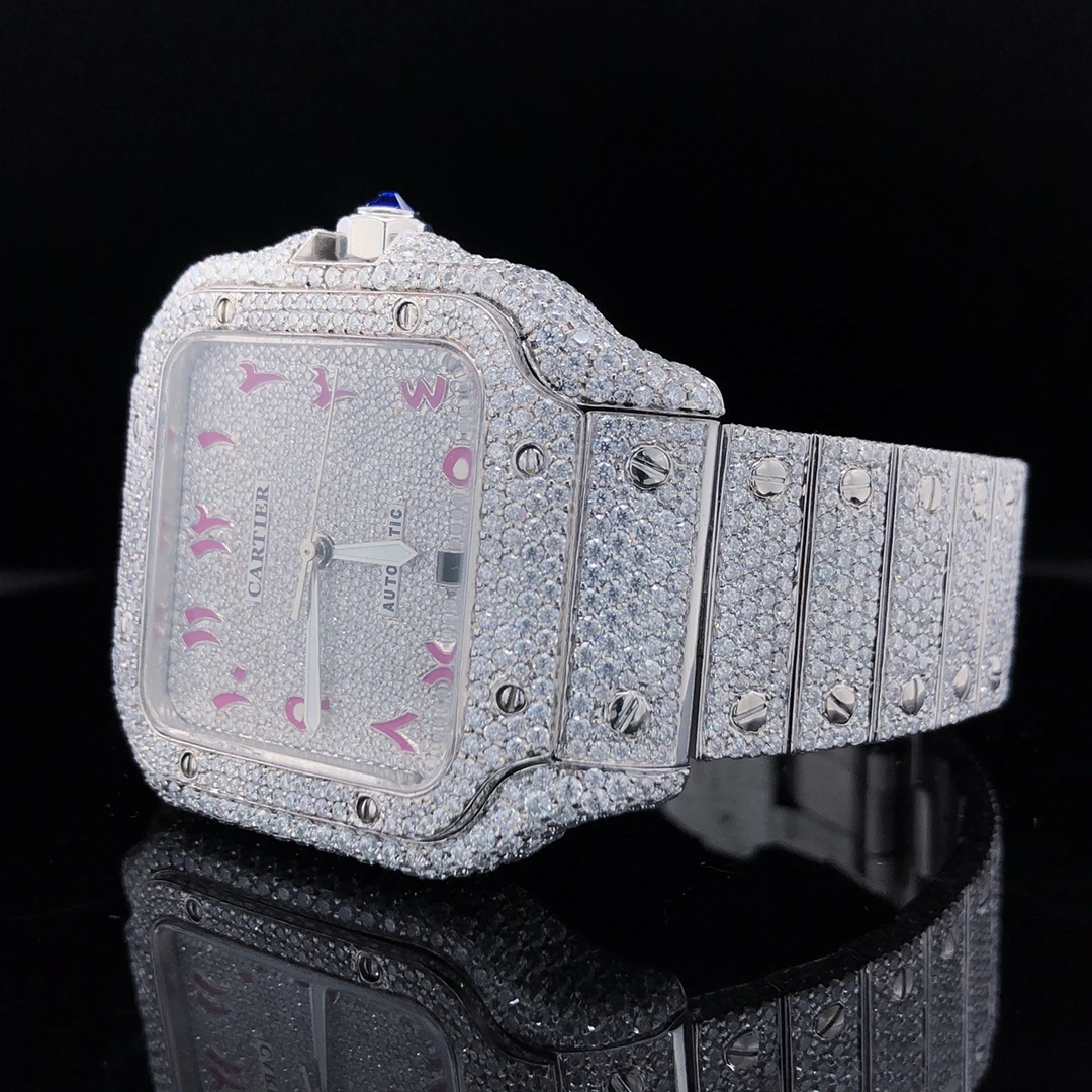 Best Quality VVS Moissanite Diamond Men's Watch Stainless Steel White Gold Plated Roman Square Sport Fashion Style Birthday Gift