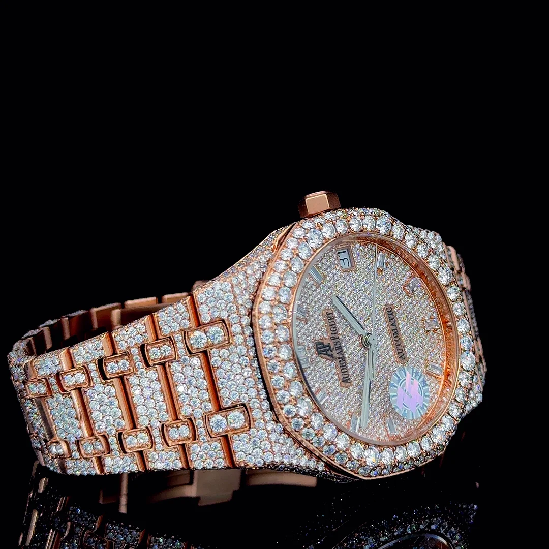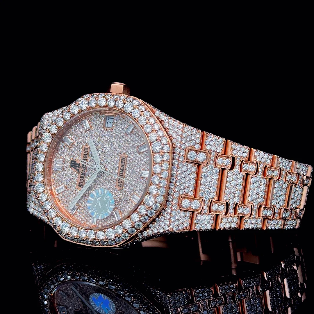 Full Iced Fashion Sport Business Coin Quartz Moissanite Diamond Men Watch Stainless Steel Dial Glass 41mm White Gold Limited