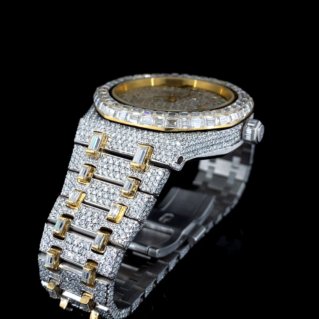 Full Iced Out Moissanite Baguette Diamond Sport Quartz Men Watch Stainless Steel Yellow and White Full Customise 41mm
