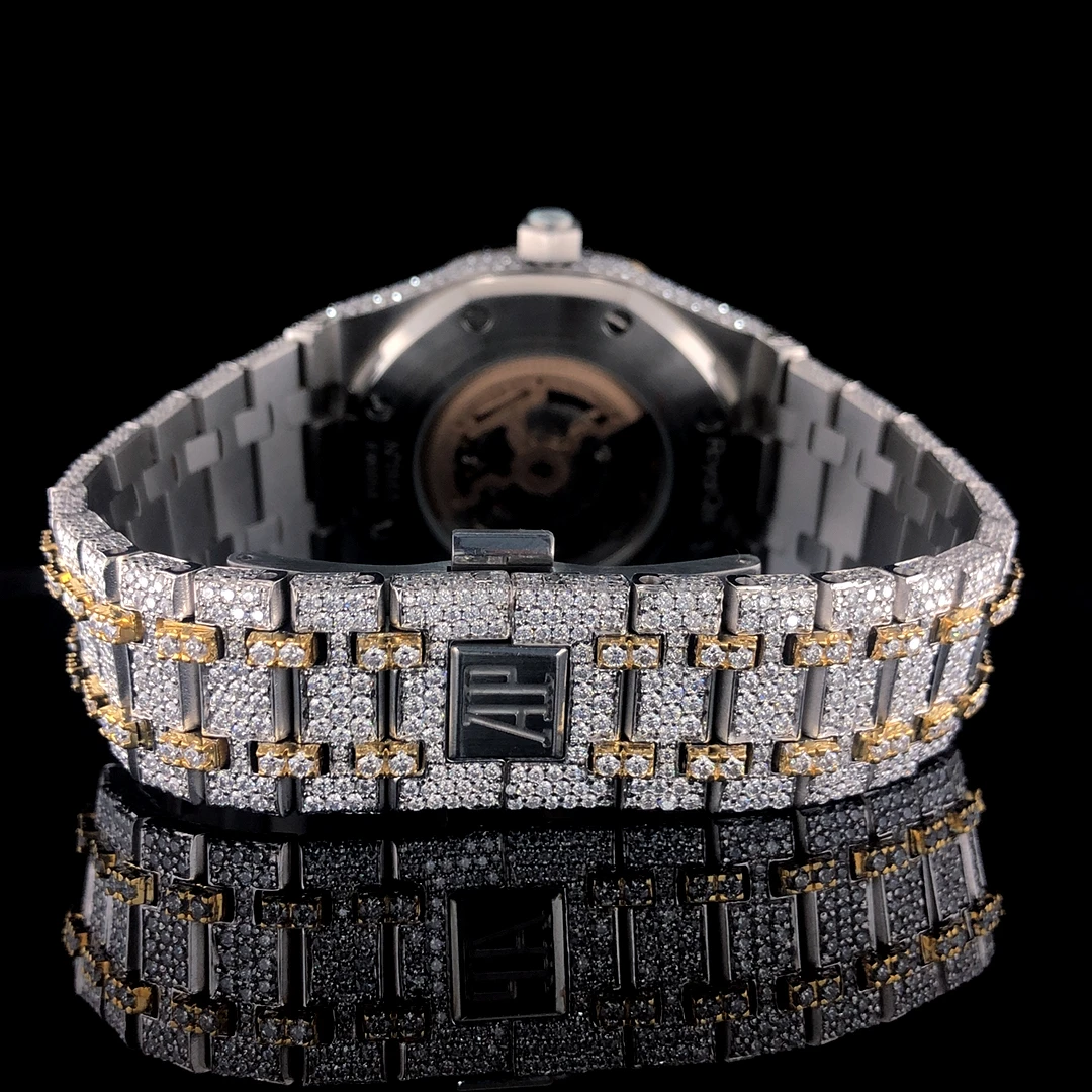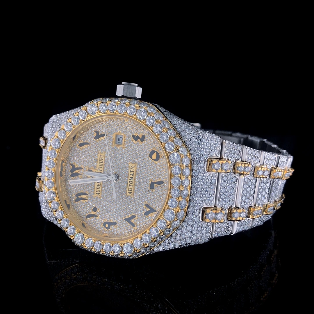 Full Iced Out VVS Moissanite Diamond Sport Fashion Quartz Men's Watch Stainless Steel White/Yellow Gold Arabic Dial
