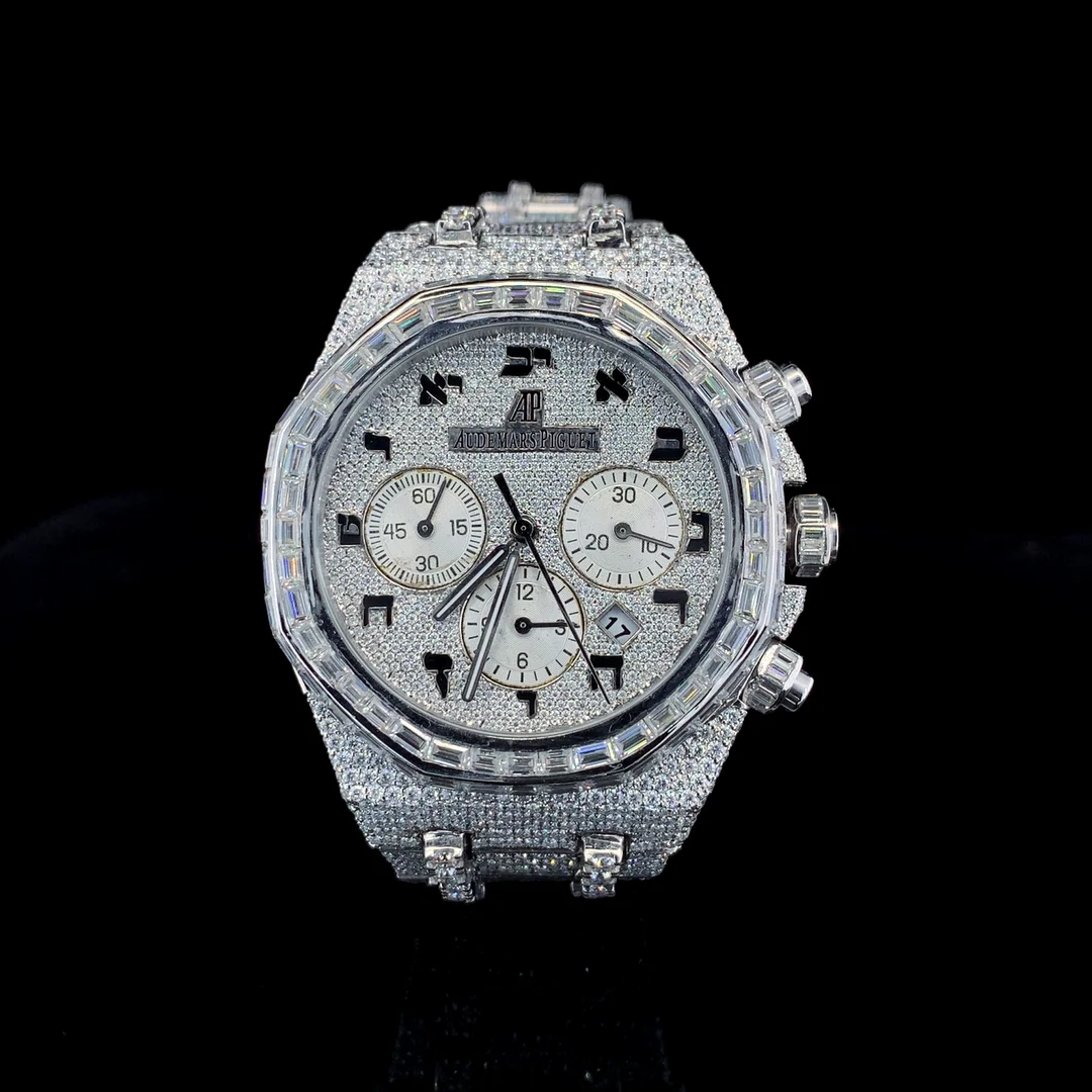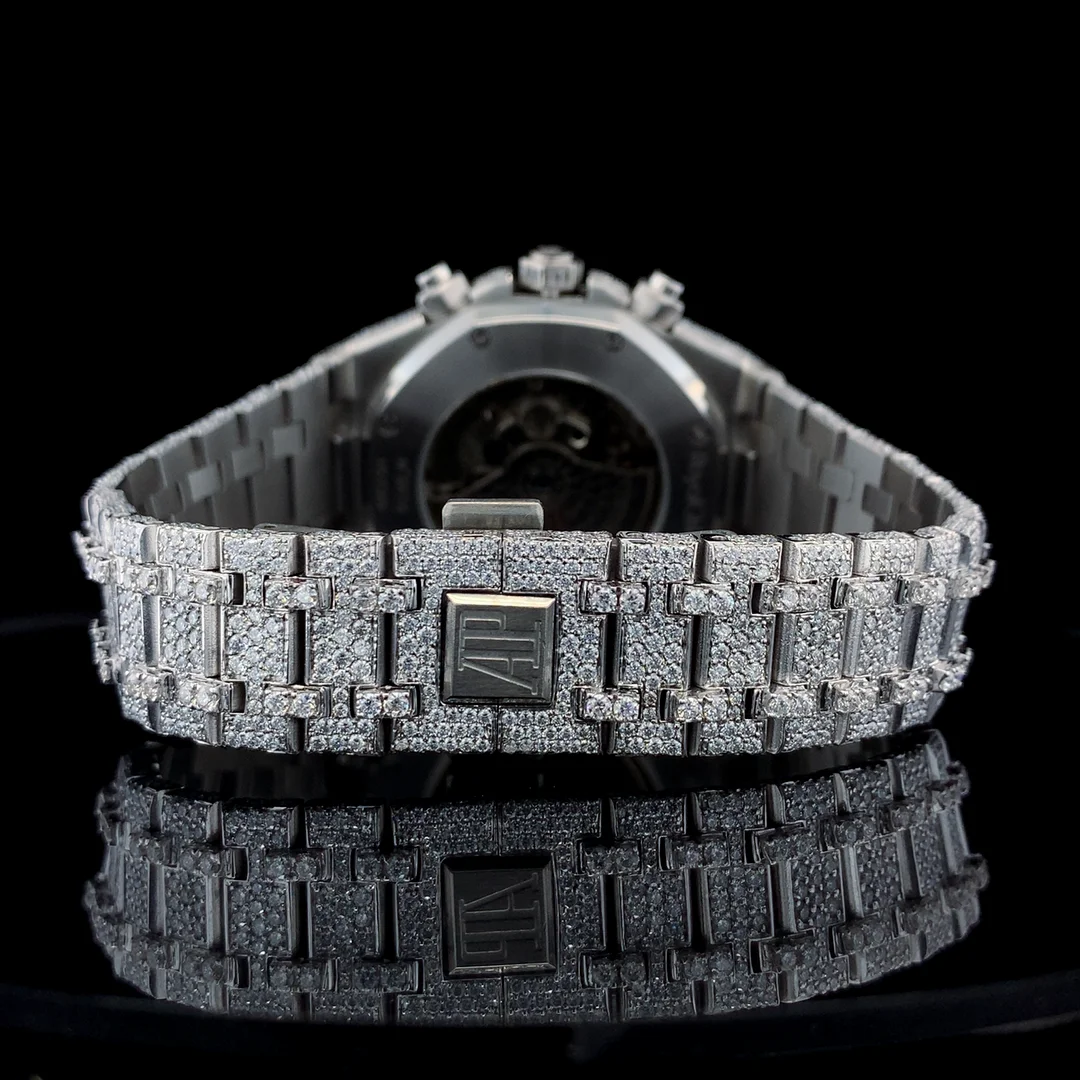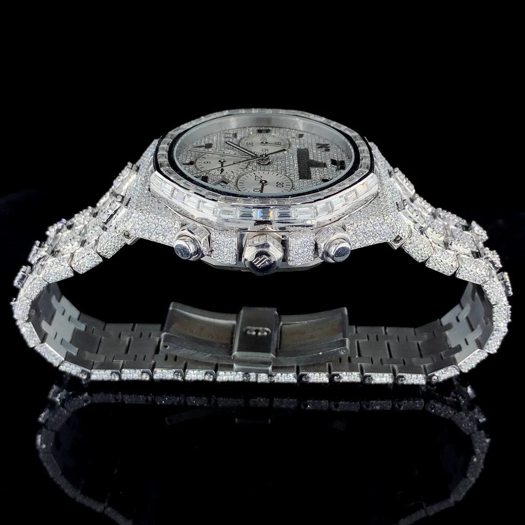 Full Iced VVS Diamond Quartz Sport Glass Coin Business Fashion Men Watch Stainless Steel Working White Gold Plated
