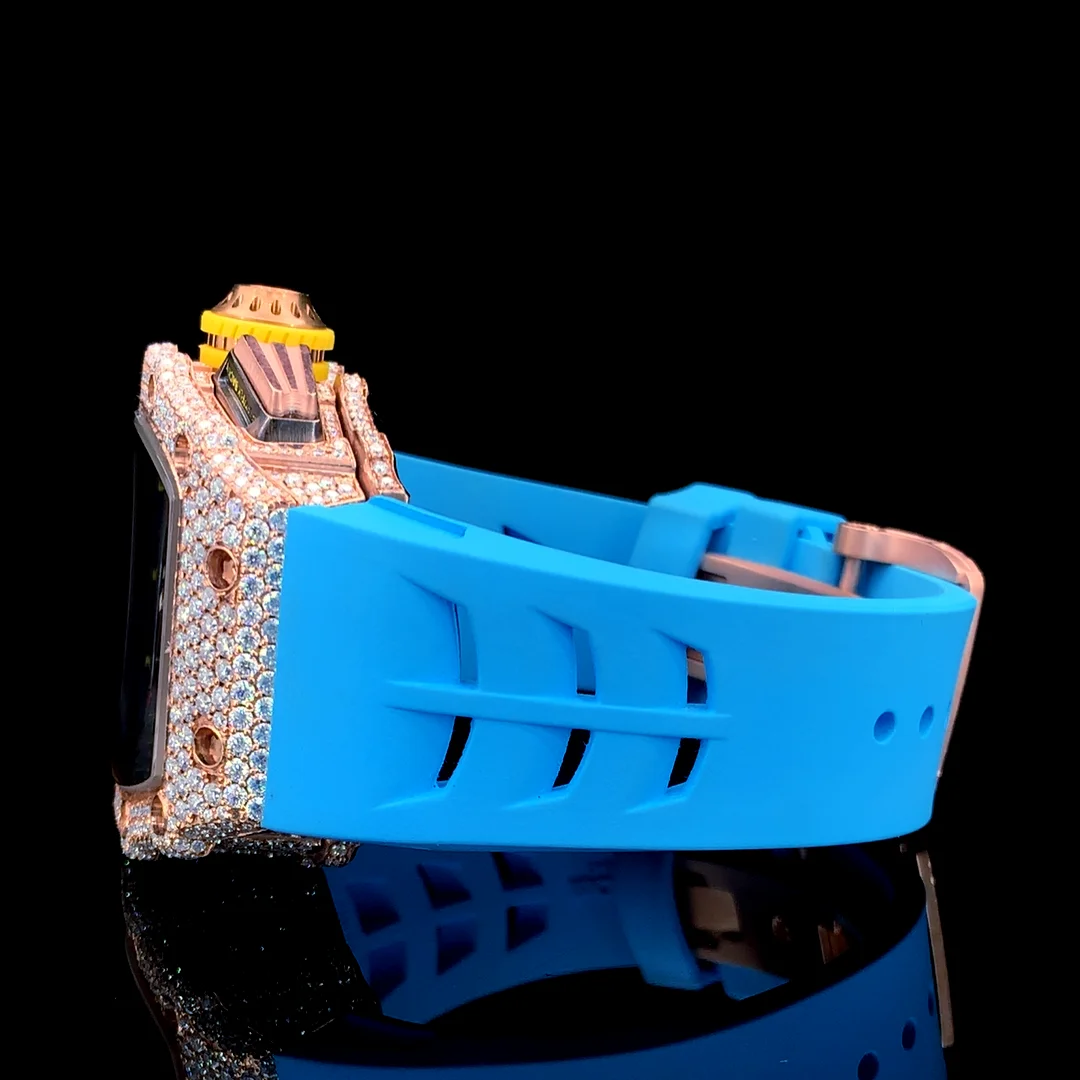 Iced VVS Moissanite Diamond Business Sport Fashion Quartz Movement Stainless Steel Case Silicone Coin Watch 20mm Width Wedding