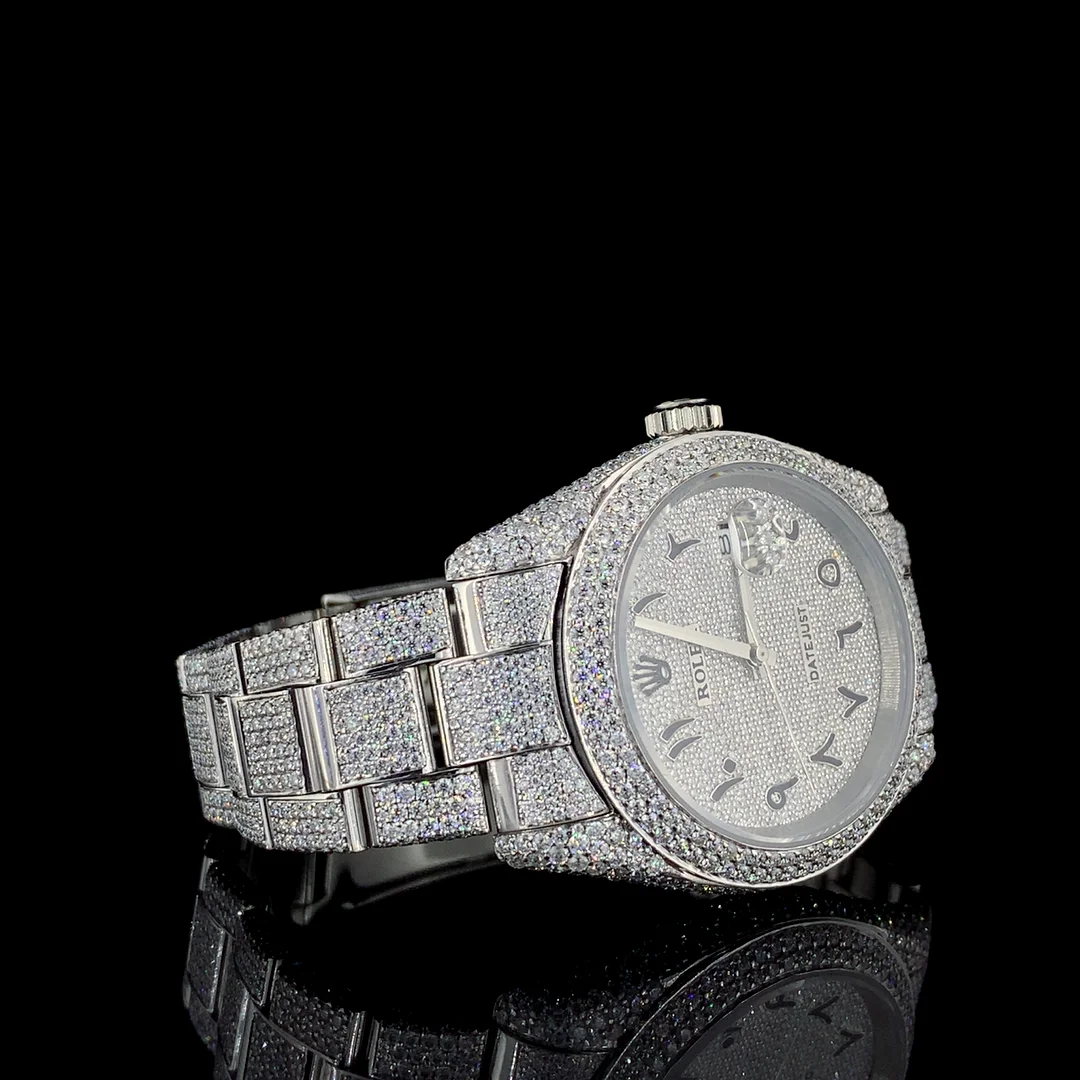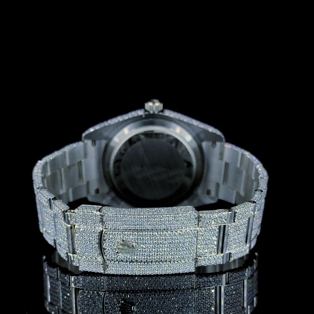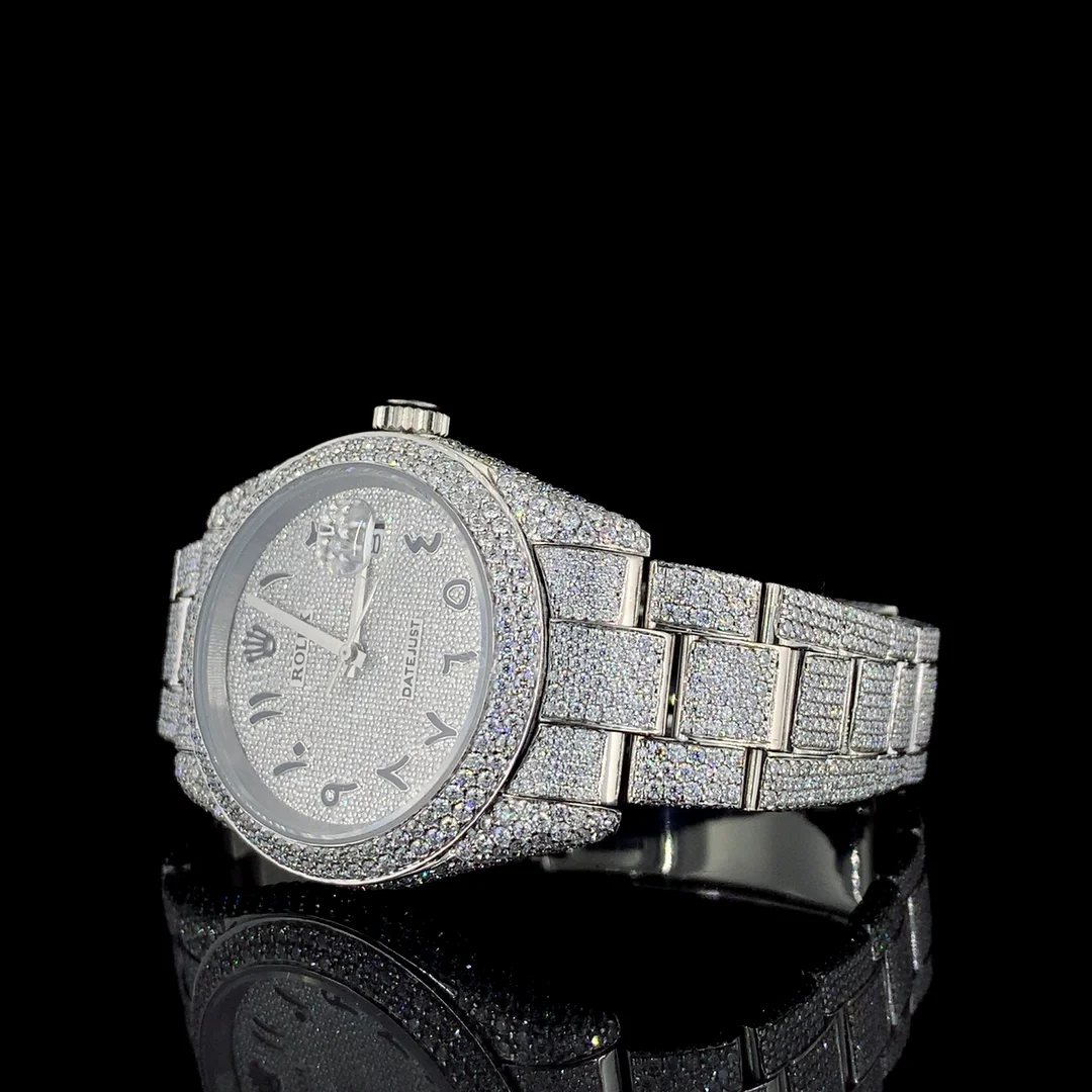 Latest Sport Fashion Hip Hop Shape VVS Quality Moissanite Quartz Watch Automatic Date Feature Stainless Steel Glass Dial