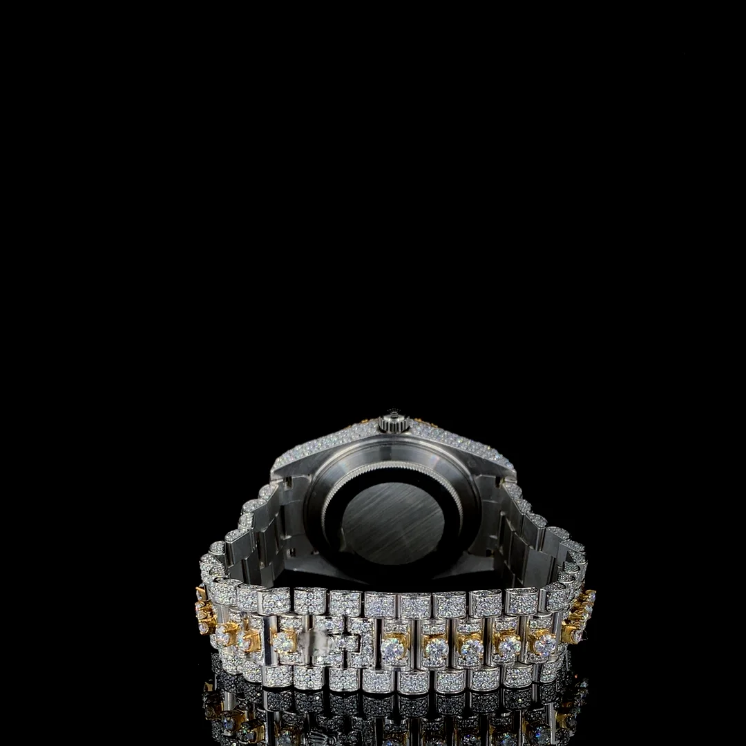 Latest Two-Tone Business Sport Fashion Watch Yellow Gold Silver Iced Quartz Glass Date Feature VVS Quality Moissanite Stainless
