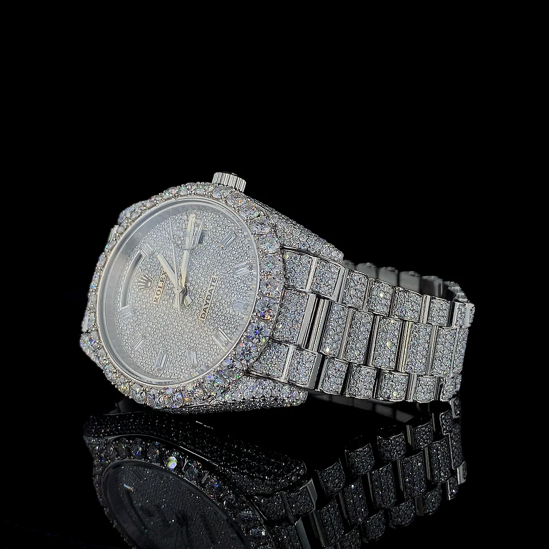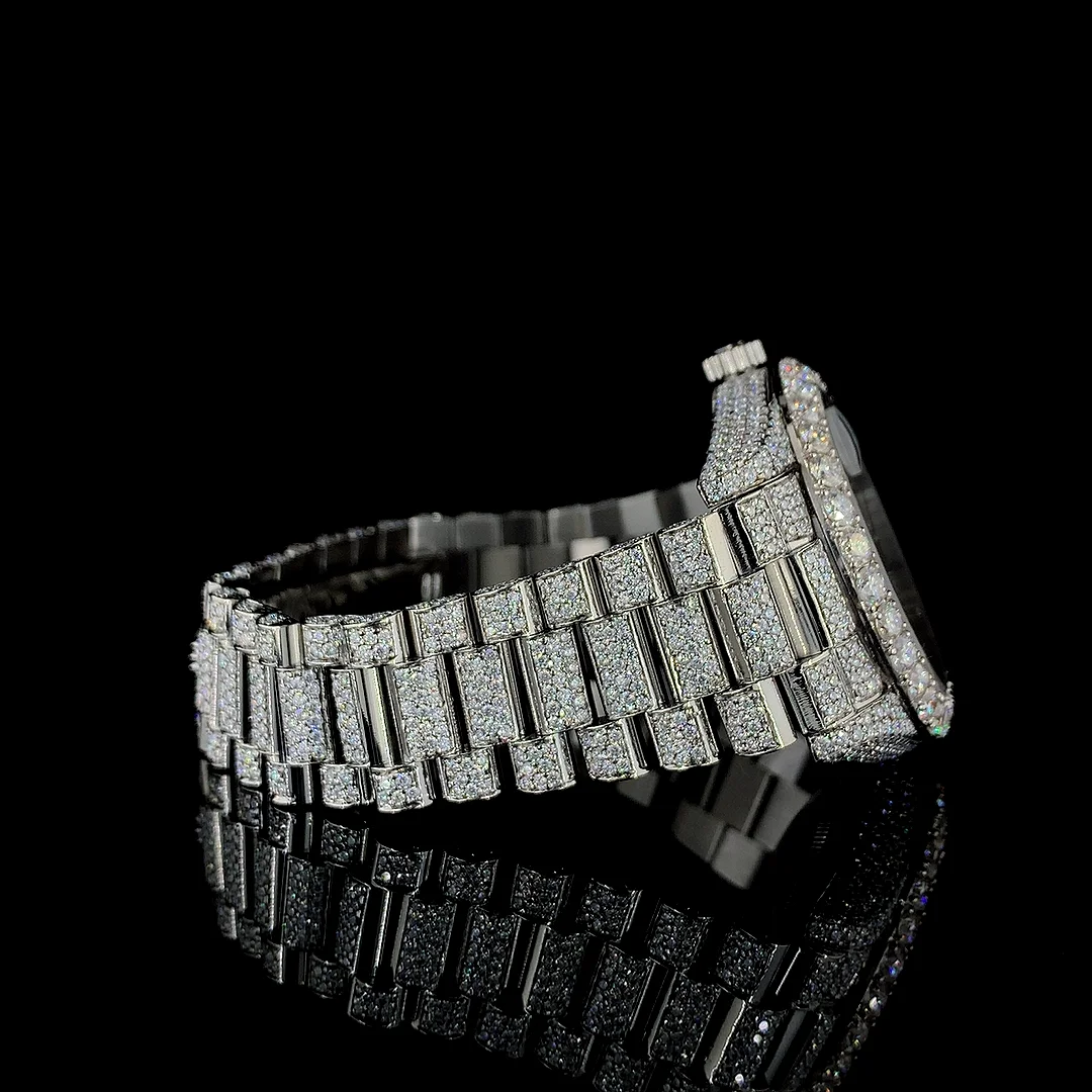 Latest White Gold Quartz Movement ETA Business Sport Watch Hip Hop Shape VVS Quality Moissanite Fashion Stainless Steel
