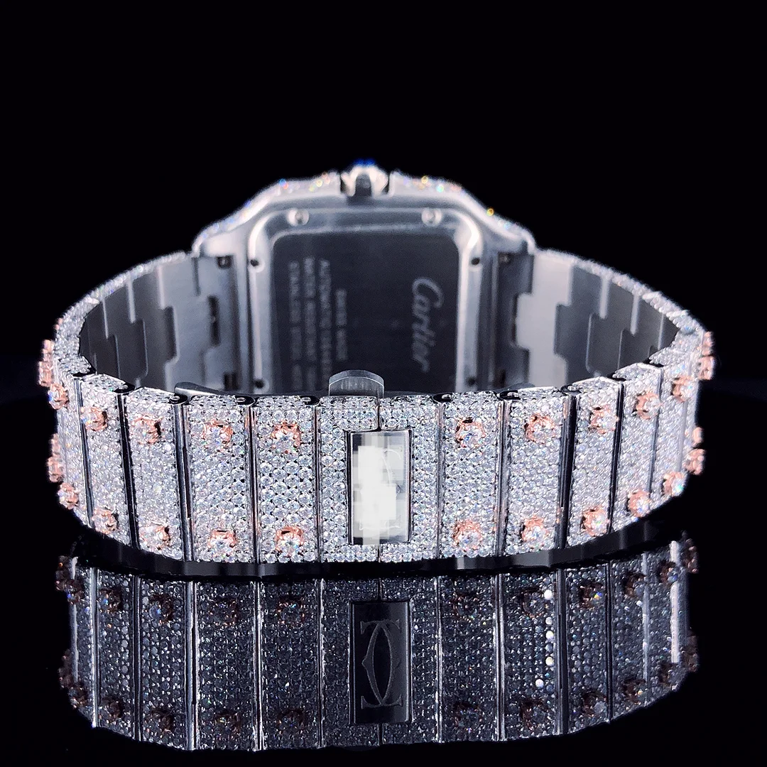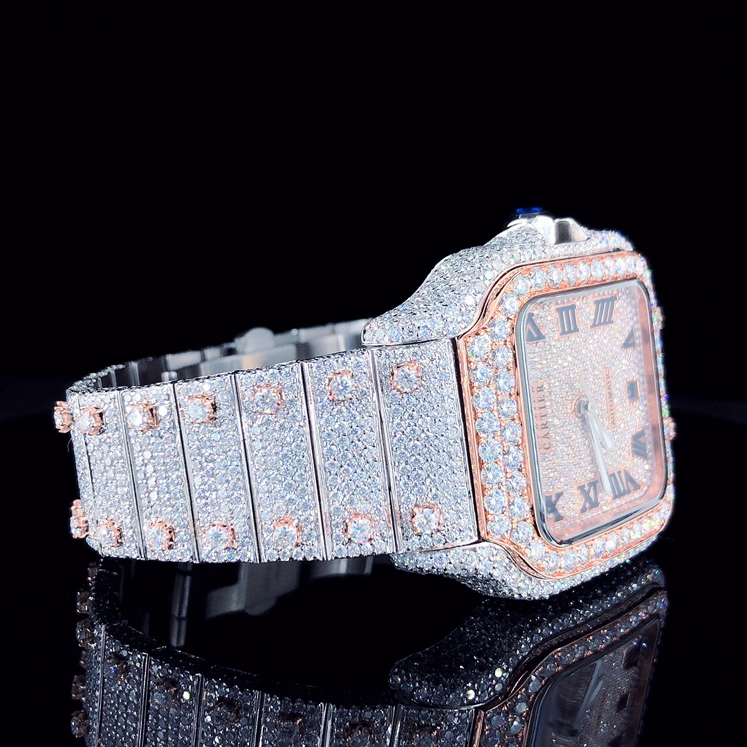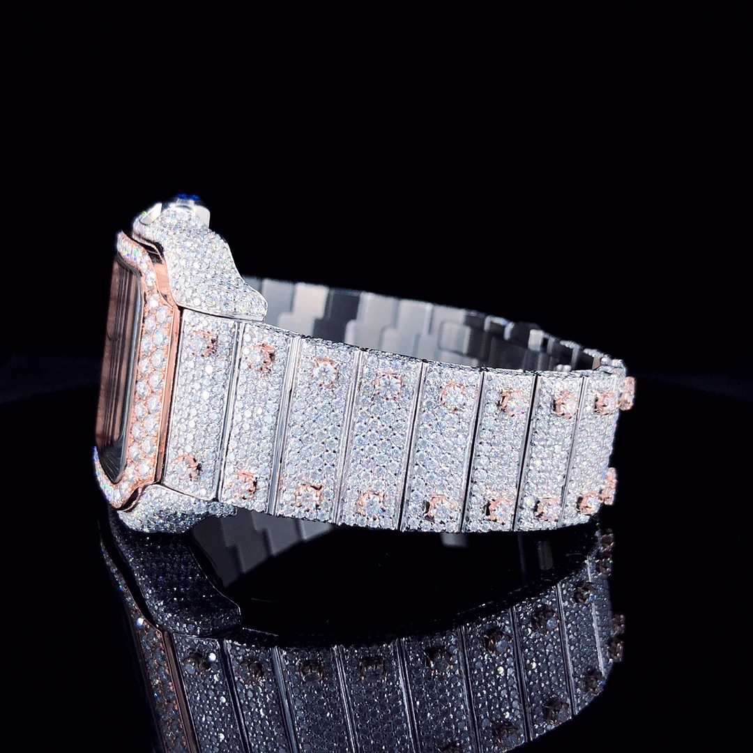 Men's Sport Business Coin Fashion Square Stainless Steel Watch White Gold Plated Quartz Glass Full Iced Moissanite Diamond