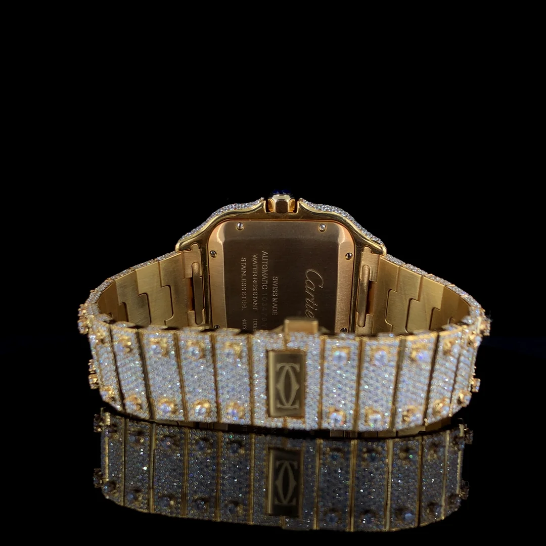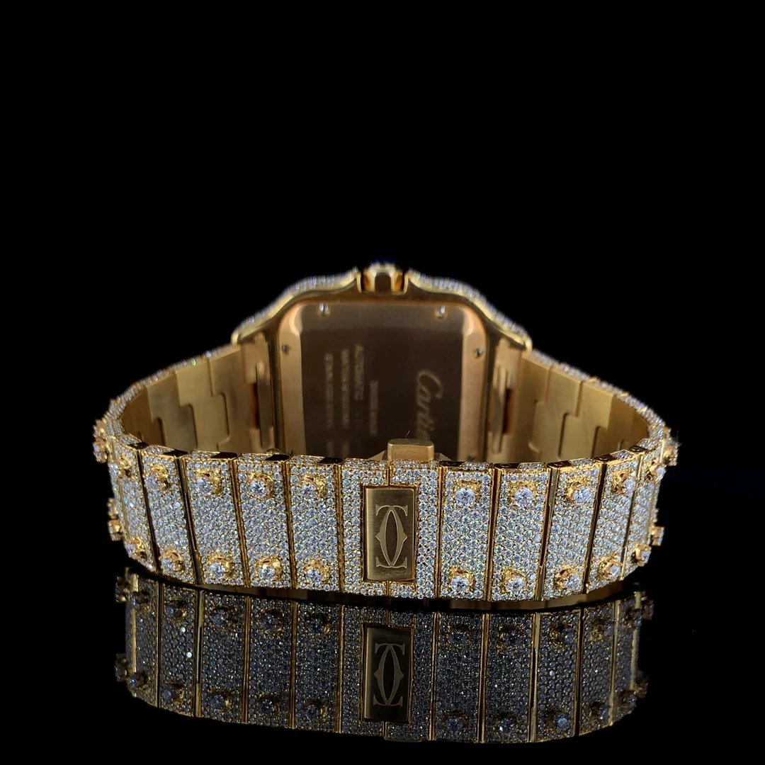 Moissanite Diamond Full Iced Out Quartz Fashion Business Sport Men Watch Stainless Steel Yellow Gold Plated for Birthday Gift