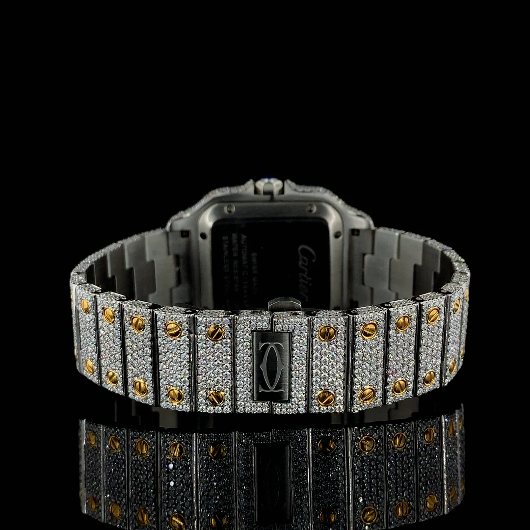 Moissanite Diamond Full Iced Quartz Movement Sport Fashion Men's Watch Stainless Steel White Yellow Gold Plated Birthday Gift