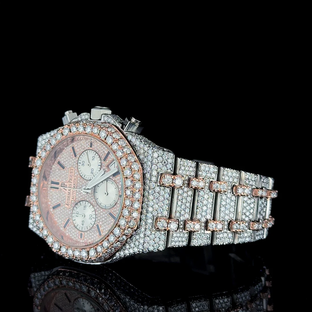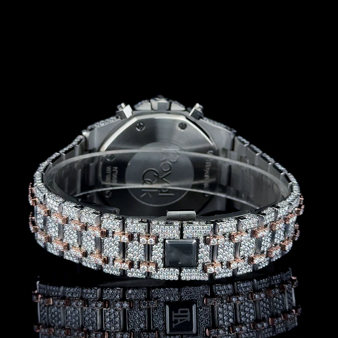 Premium Moissanite Diamond Quartz Fashion Watch Arabic Black Numerals Dial Glass Stainless Steel Case Hip Hop Japanese Date