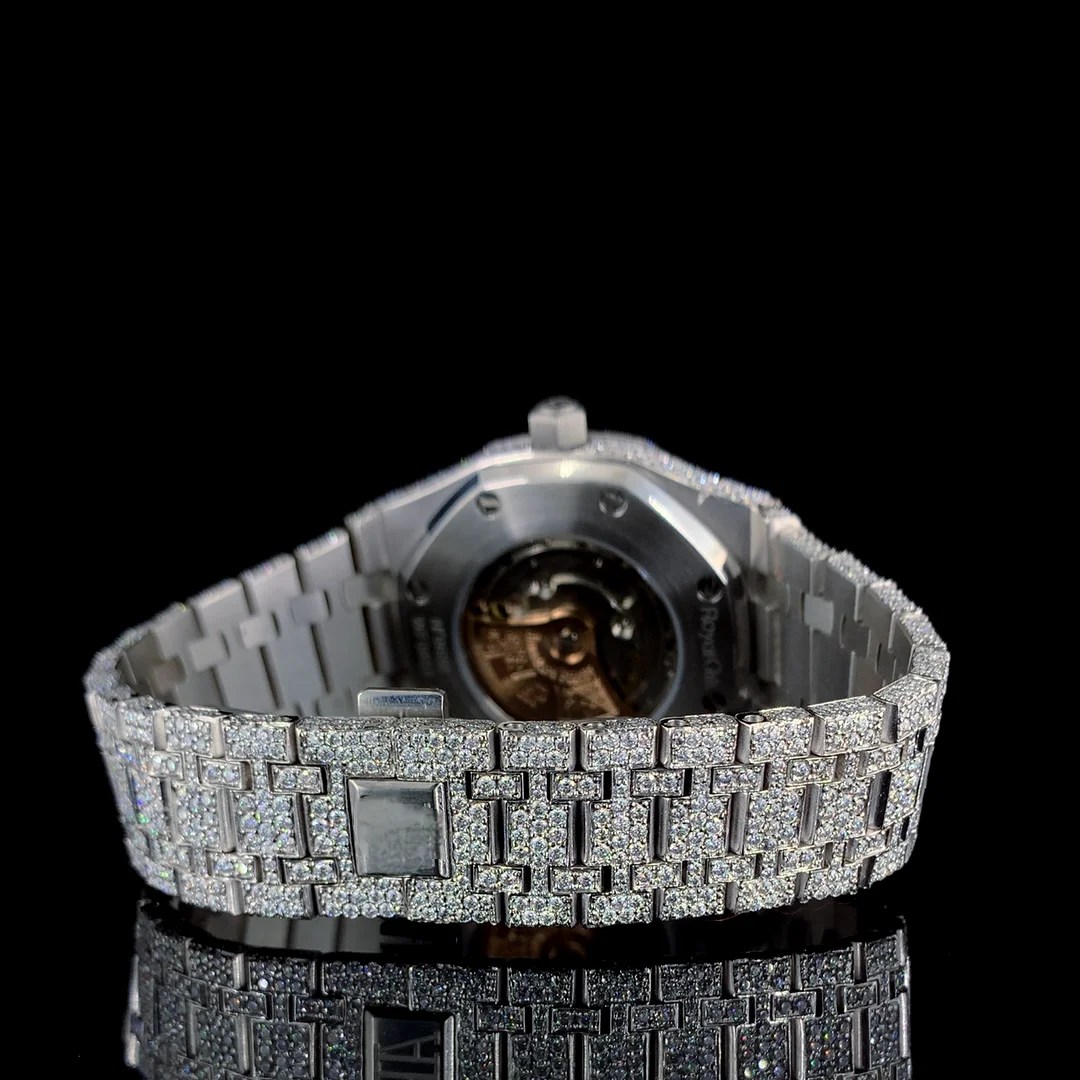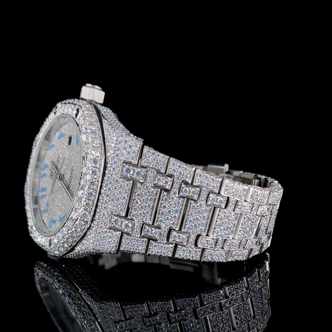 Premium Quality Custom Mechanical Men's Watch Hip Hop Style Iced VVS Moissanite Blue Dial Face Diamond Stainless Quartz Business