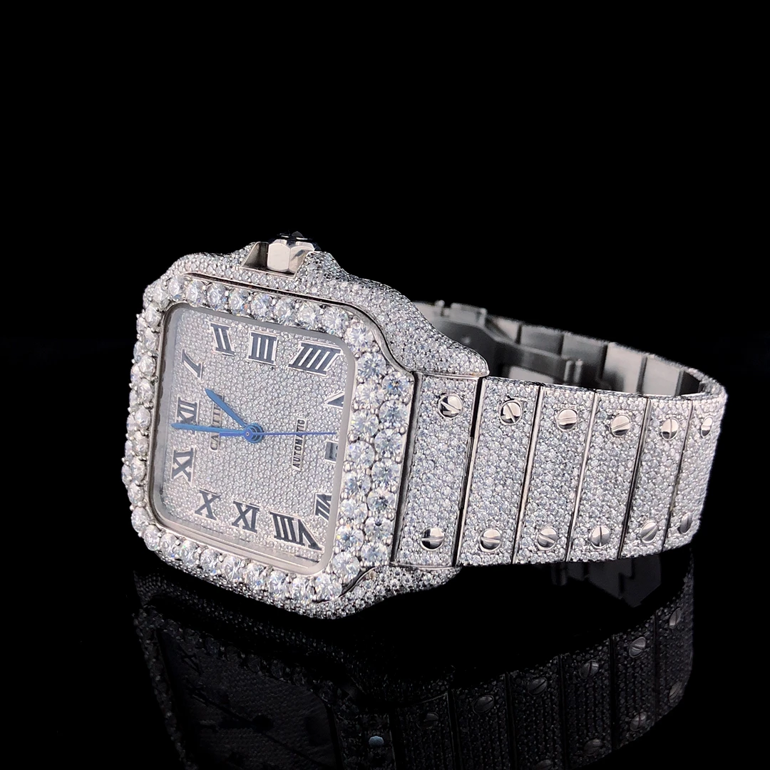 Premium Quality VVS Moissanite Diamond Men's Square Stainless Steel Quartz Watch Simple Roman Sport Fashion Hip Hop