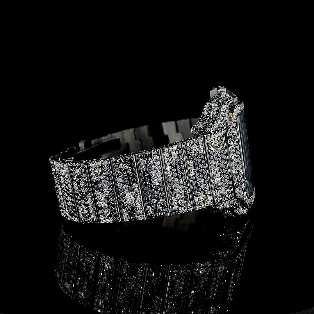 Square Customized Moissanite Diamond Men's Quartz Movement Stainless Steel Sport Fashion Luxury Simple Watch ETA