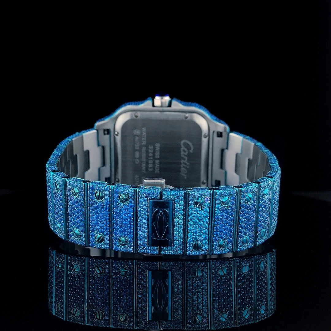 VVS Moissanite Diamond Men's Sport Business Square Watch Stainless Steel White Gold Plated Simple Roman Hip Hop Quartz Perfect