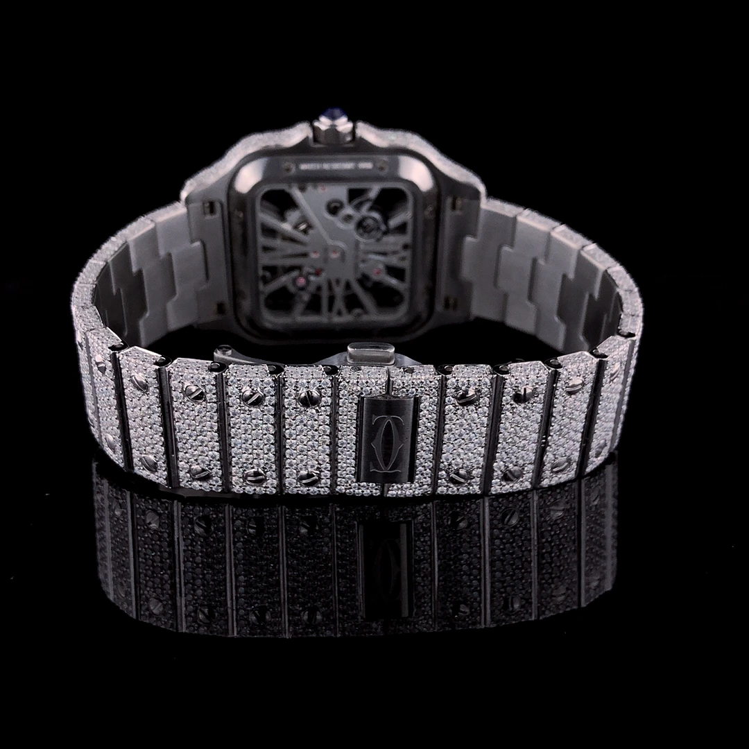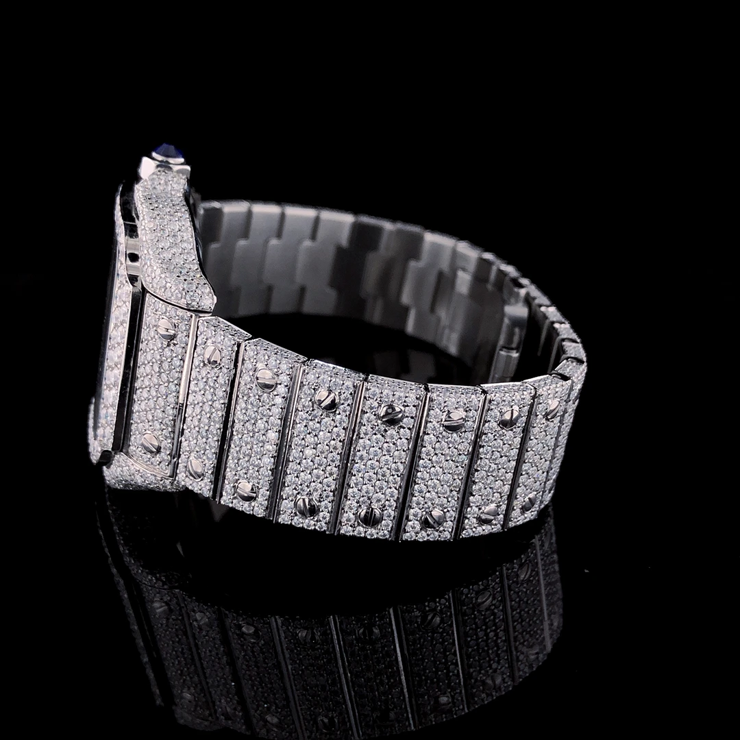 VVS Moissanite Diamond Men's Sport Business Watch Square Stainless Steel White Gold Plated Roman Simple Hip Hop Quartz Birthday