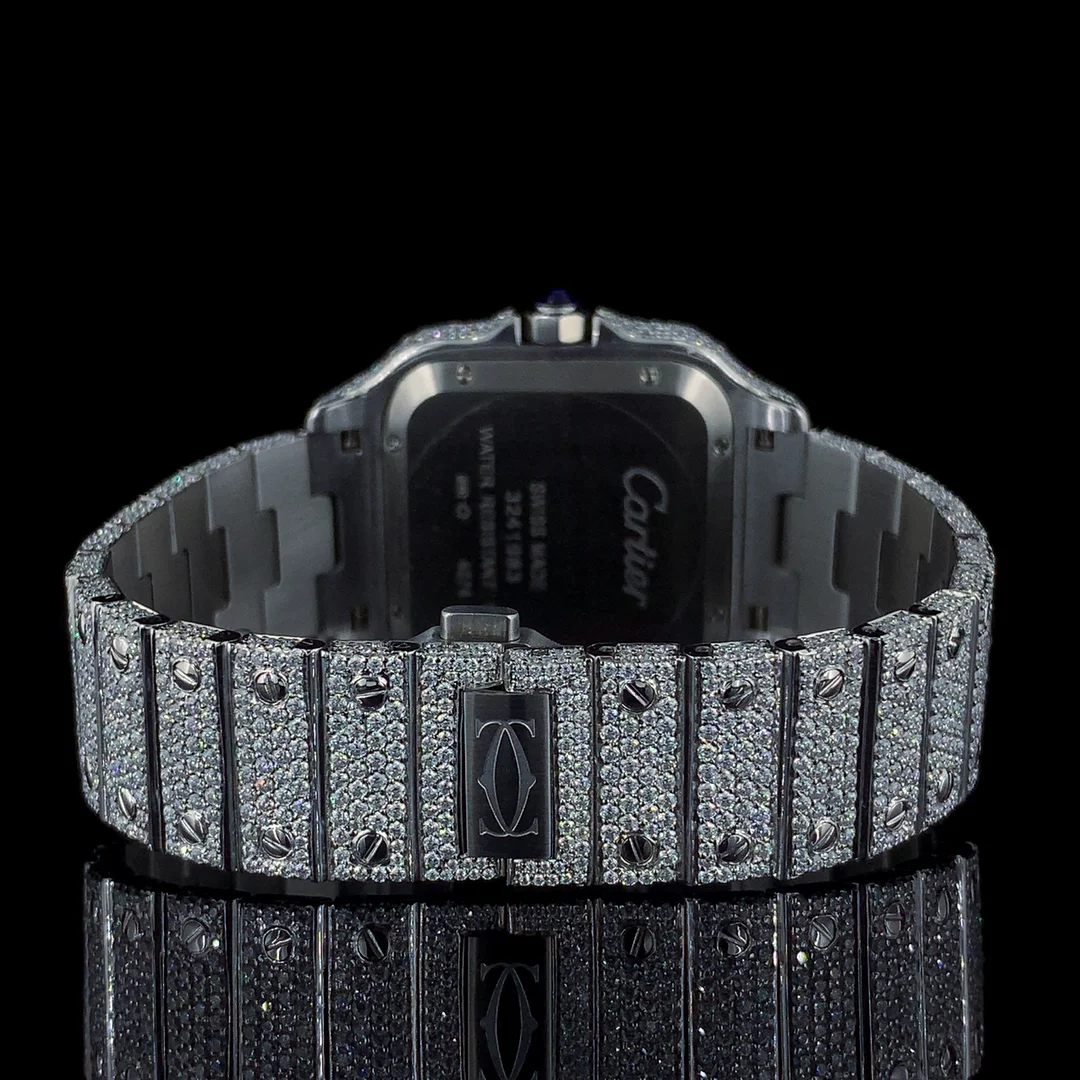 VVS Moissanite Diamond Men's Square Glass Coin Sport Business Watch Stainless Steel White Gold Plated Roman Fashion Simple