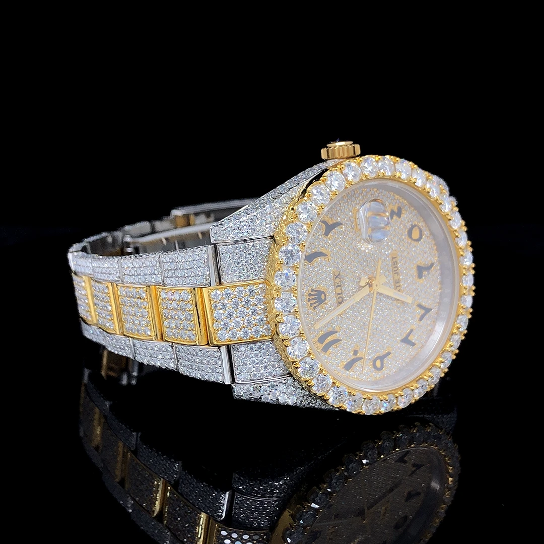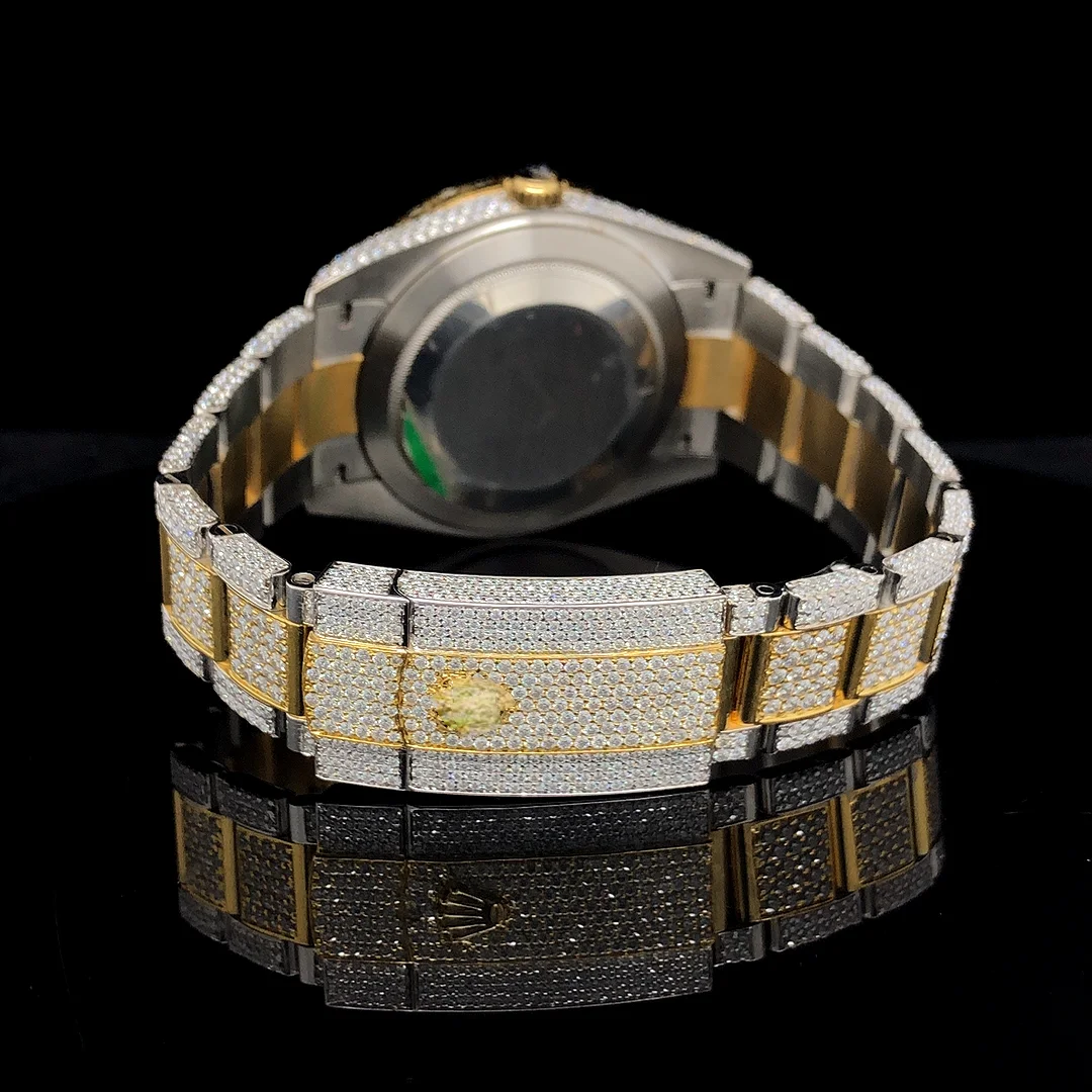 VVS Moissanite Diamond Men's Watch 41mm White Gold Plated Stainless Steel Dial 20mm Band Width Fully Iced Quartz Fashion Sport