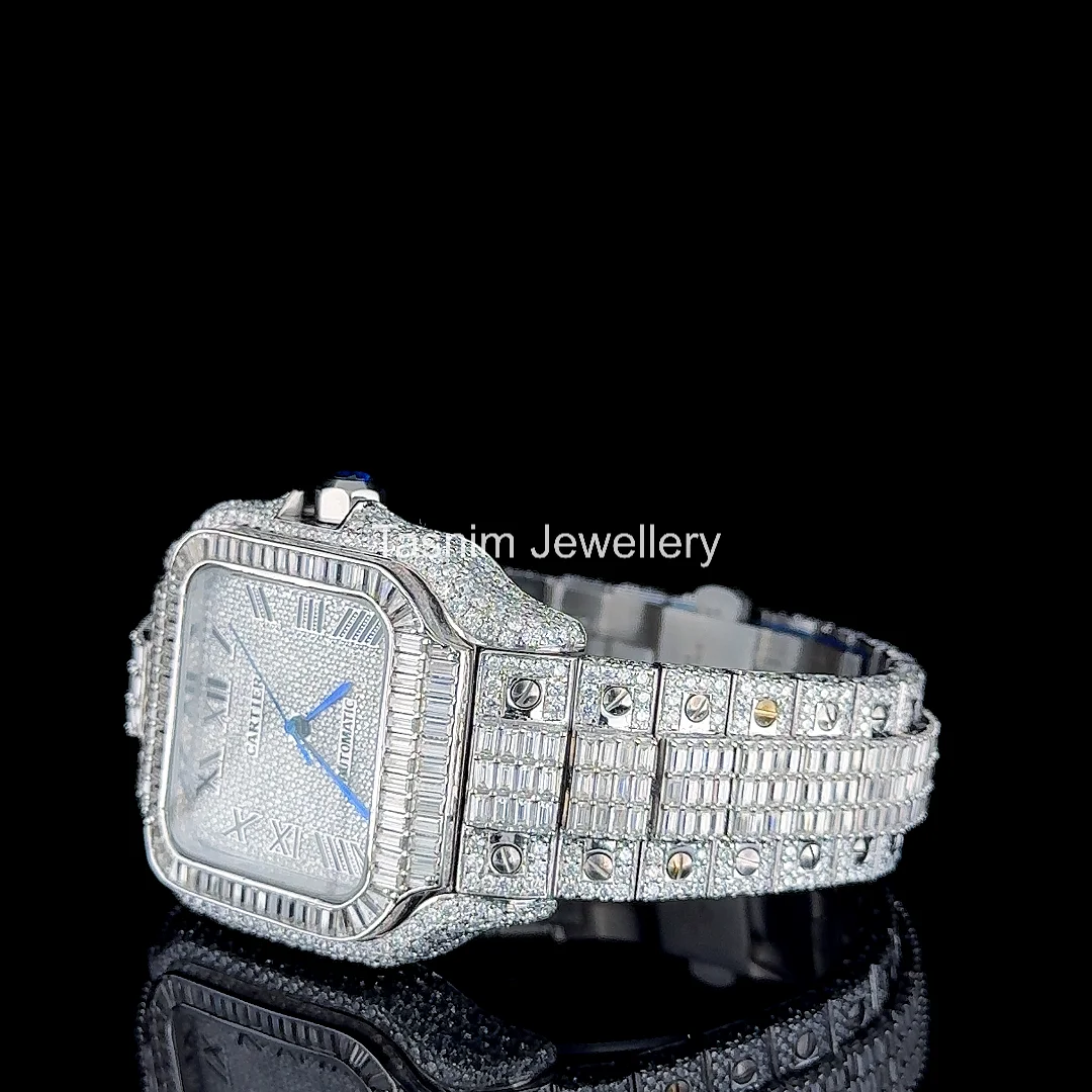 VVS Moissanite Square Quartz Glass Men's Sport Business Coin Watch Stainless Steel White Gold Plated Hip Hop Style Birthday Gift