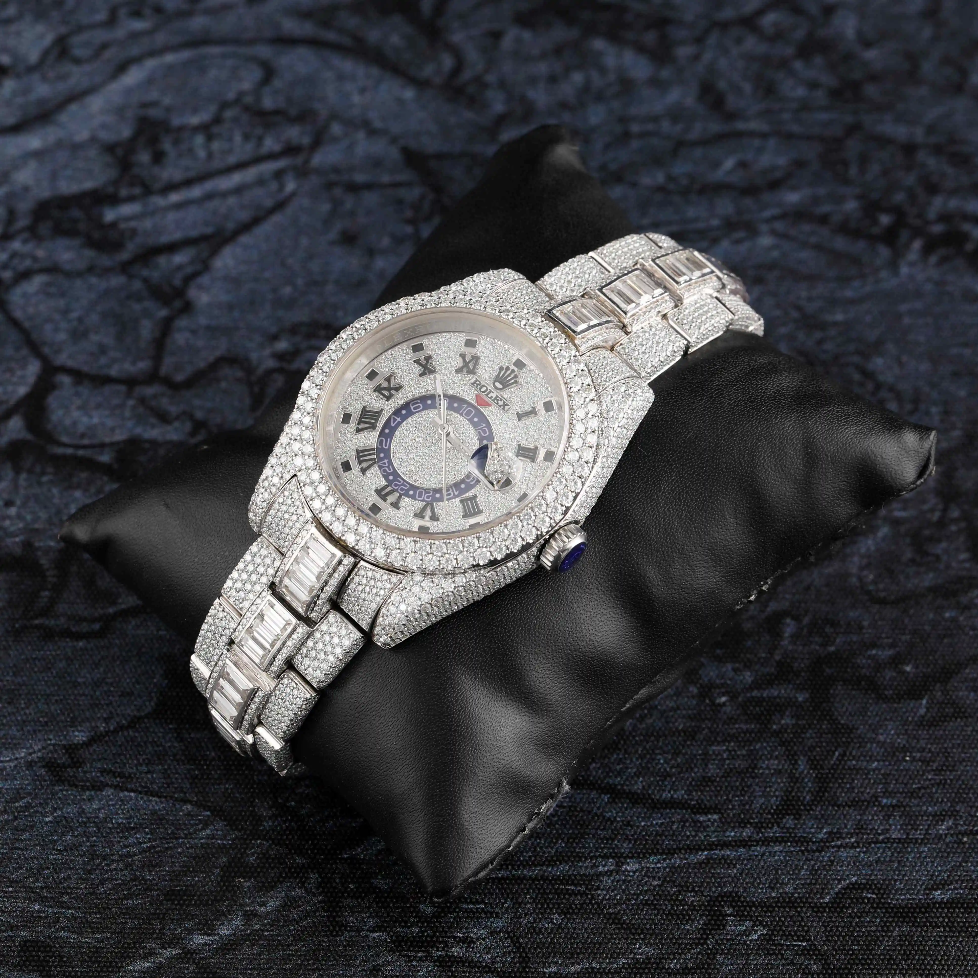 VVS Quality Men's 41mm Glass Stainless Steel Sport Watch Yellow Gold Plating ETA Quartz Movement Analog Business Coin Fashion
